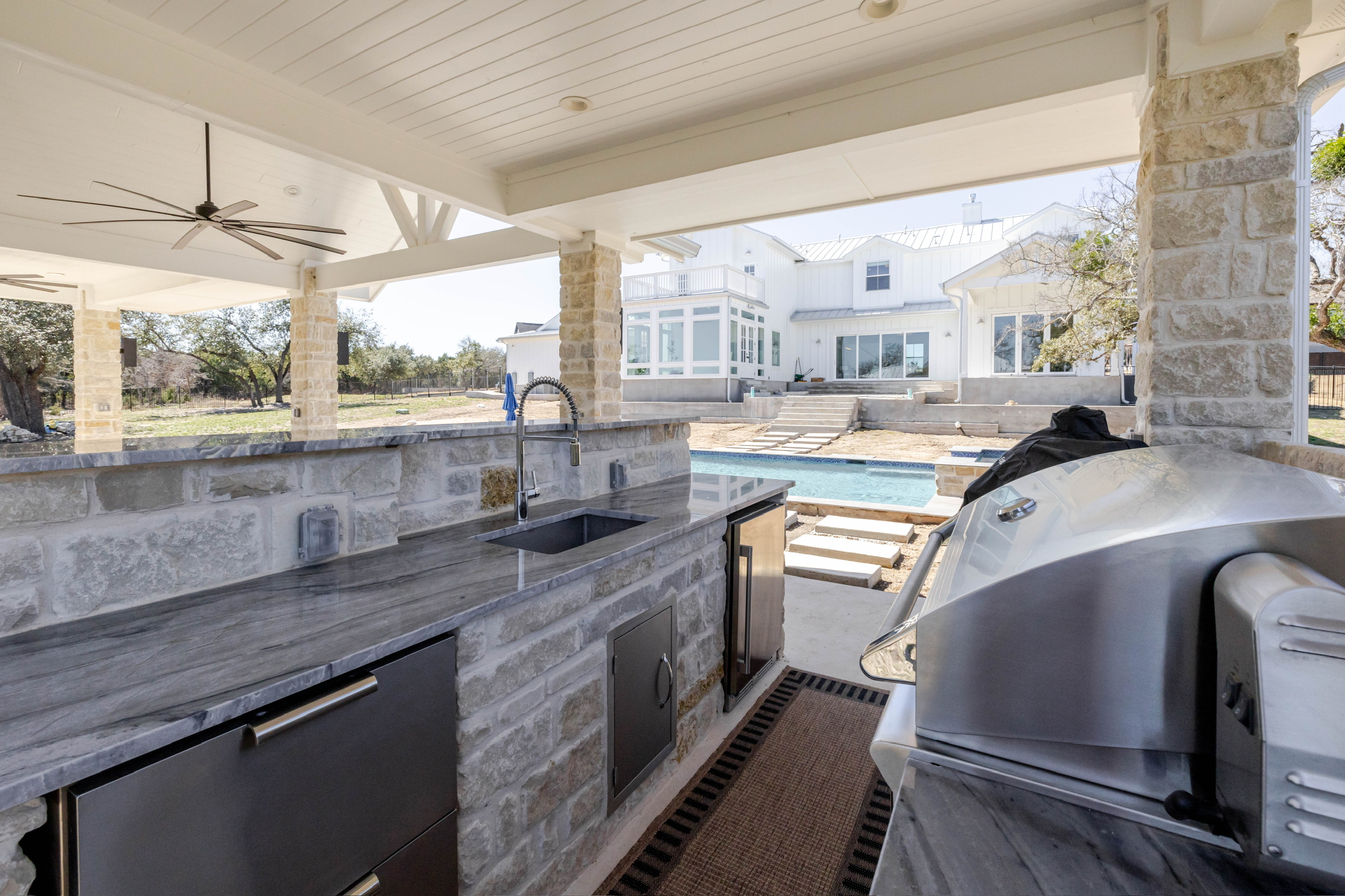 Hill Country Elegance Meets Modern Luxury- Welcome to a stunning 4-bedroom, 3.5-bathroom estate nestled on 1.73 acres in Georgetown’s prestigious Peninsula community. Built in 2021, this 4,454 sq ft residence offers refined living with thoughtful design and high-end finishes throughout. Step inside to discover soaring ceilings, four elegant fireplaces, and expansive living spaces ideal for both entertaining and everyday comfort. The chef’s kitchen flows seamlessly into the main living area, while the primary suite provides a tranquil retreat. Outdoors, enjoy a beautifully crafted concrete pool, perfect for Texas summers. The stone exterior, slab foundation, and 808 sq ft garage add to the home’s durability and charm. Zoned to top-rated schools and just minutes from Lake Georgetown, this property offers the perfect blend of privacy and convenience.