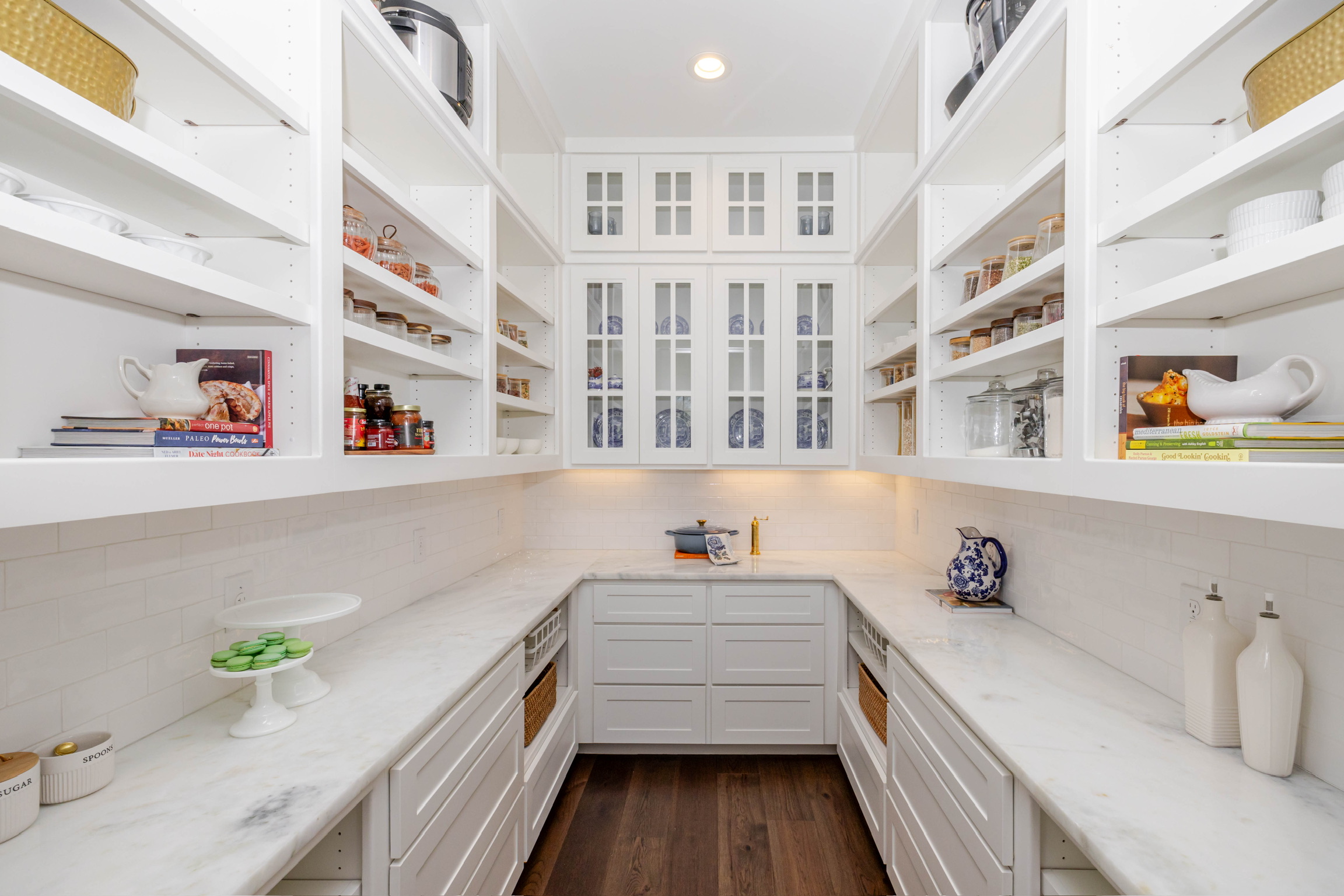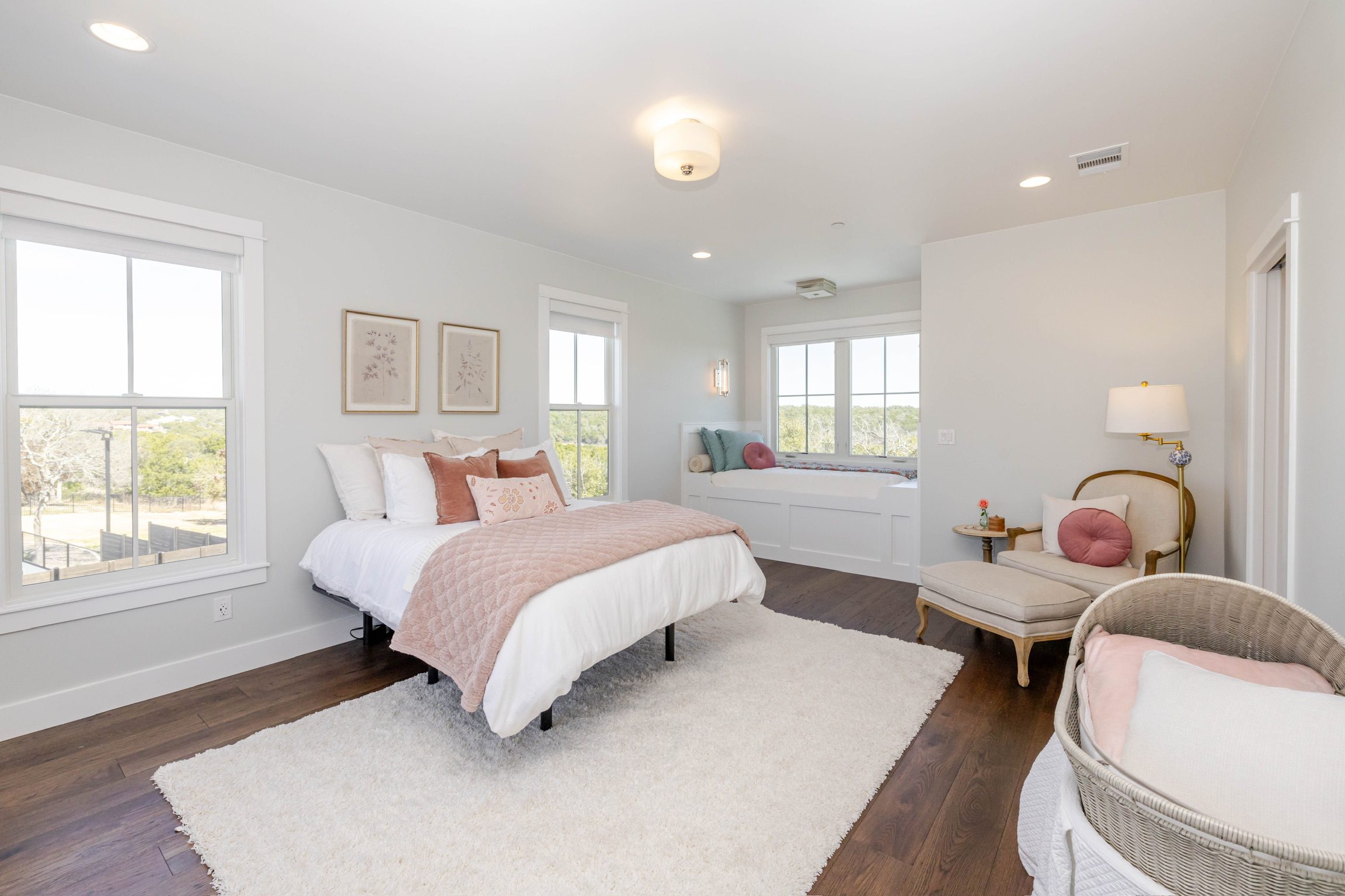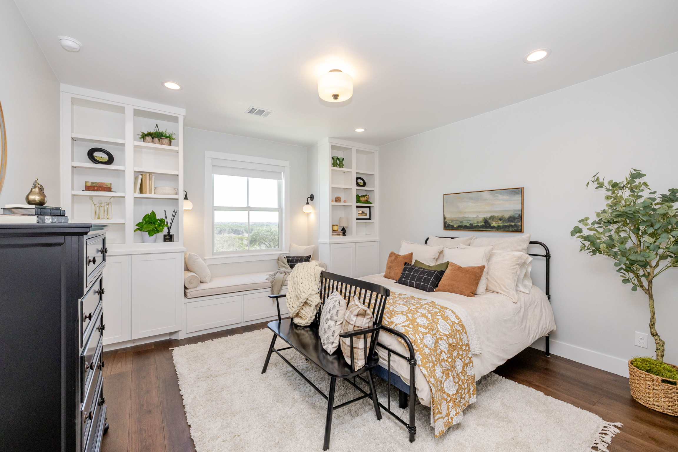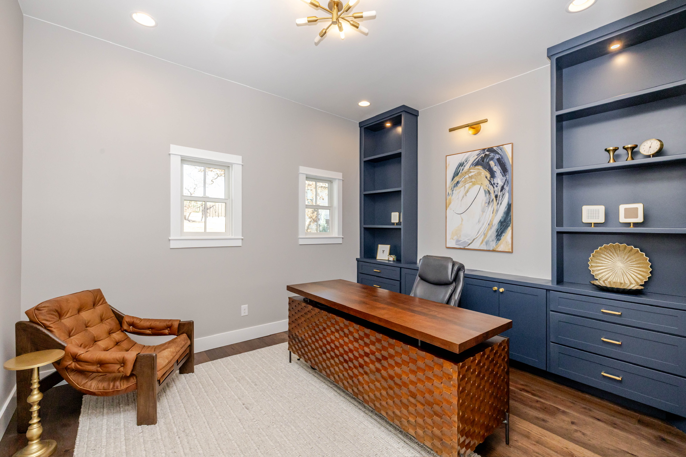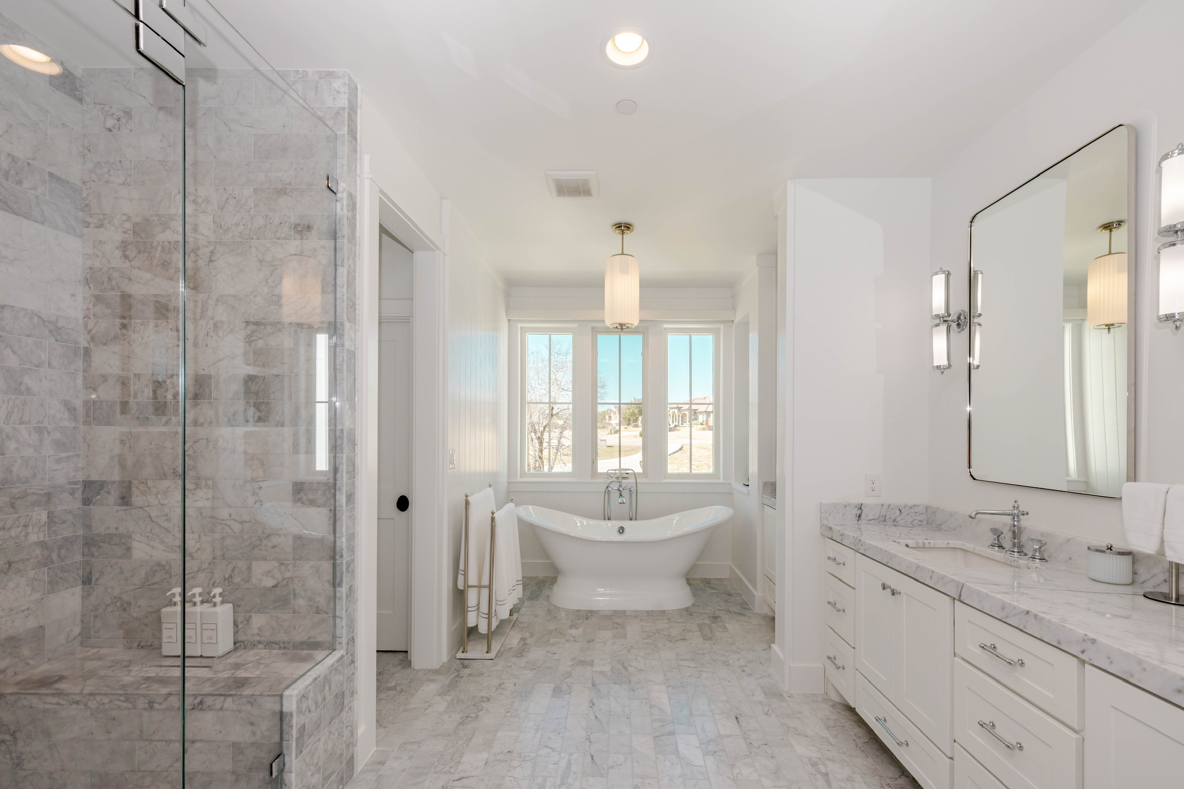 Soaring vaulted ceilings and wood beams that create a warm, grand atmosphere Open-concept layout with a seamless flow between kitchen, dining, and living areas Floor-to-ceiling stone fireplaces that anchor the living spaces with rustic charm Chef’s kitchen with high-end stainless steel appliances, a large island, custom cabinetry, and walk-in pantry Spa-like primary bathroom with a soaking tub, walk-in shower, dual vanities, and expansive walk-in closet Multiple living areas including a media room and formal living room Elegant hardwood flooring and designer lighting throughout Oversized windows for abundant natural light and picturesque views Custom built-ins for storage and architectural detail High-end finishes like crown molding, tray ceilings, and quartz countertops