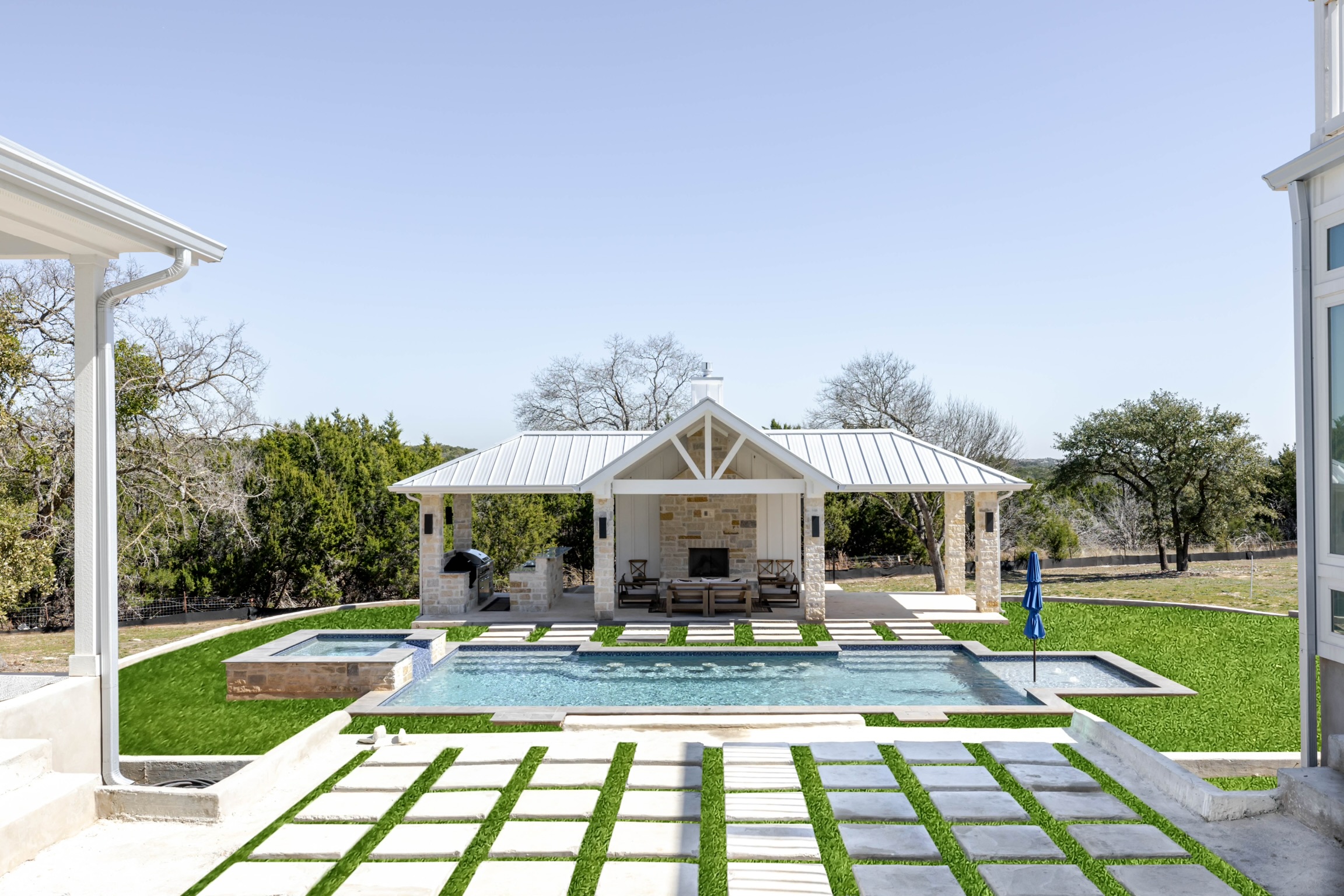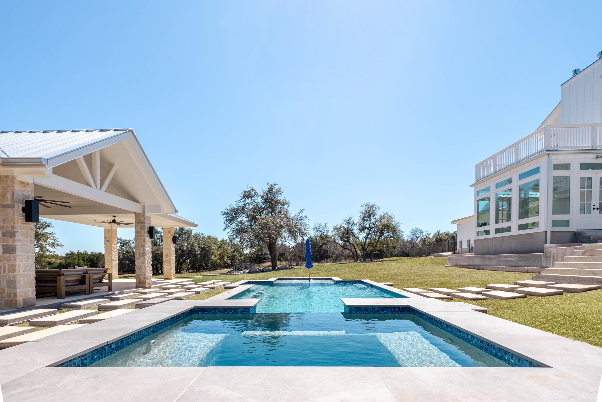 1.73-acre lot offering privacy, space, and scenic Hill Country views Custom concrete pool with a sun shelf and water features—perfect for entertaining or relaxing Expansive covered patio ideal for outdoor dining and lounging Outdoor fireplace adds cozy charm to the backyard retreat Stone and stucco exterior for timeless curb appeal and durability Side-entry 3-car garage with extra driveway space for guests Professionally landscaped yard with native plants and mature trees Gated community with exclusive access to The Peninsula at Mystic Shores Minutes from Lake Georgetown for boating, hiking, and recreation Hill Country backdrop that offers peaceful surroundings and sunset views